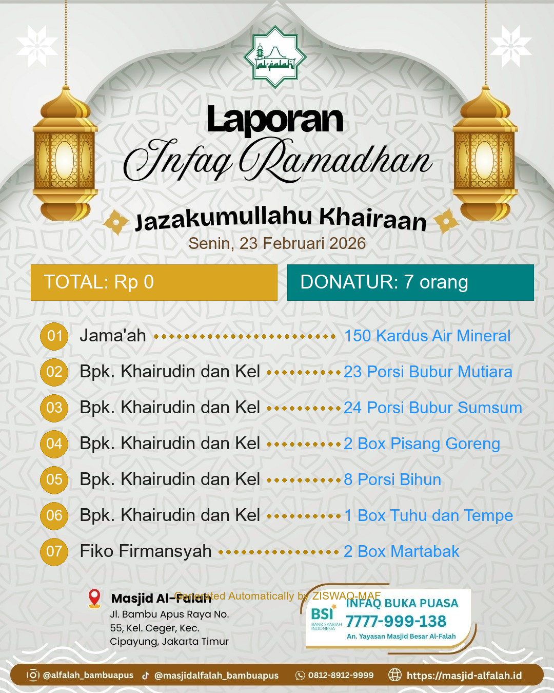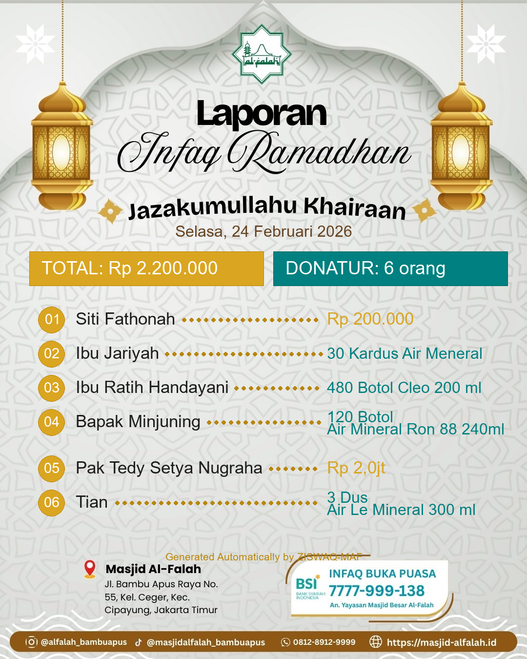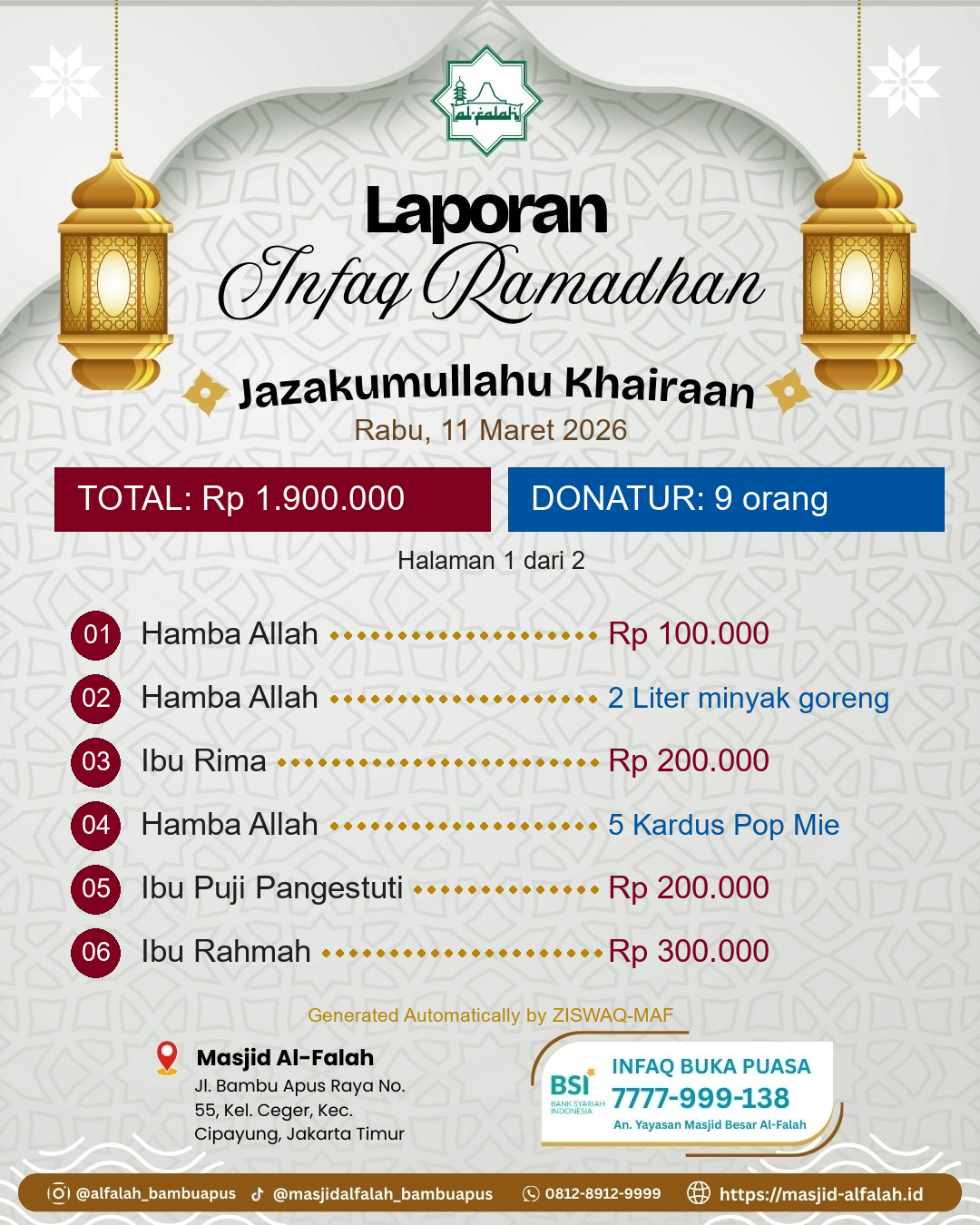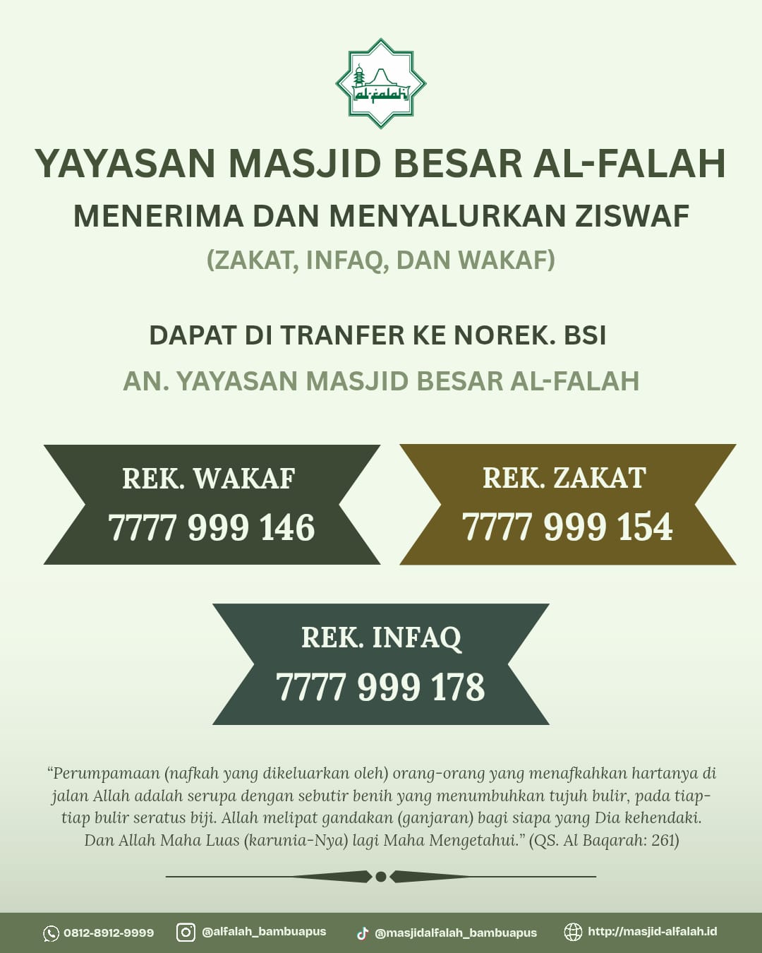 - Donasi dapat ditransfer ke nomor rekening Infaq: 5050-7070-25 ( Bank Syariah Indonesia)