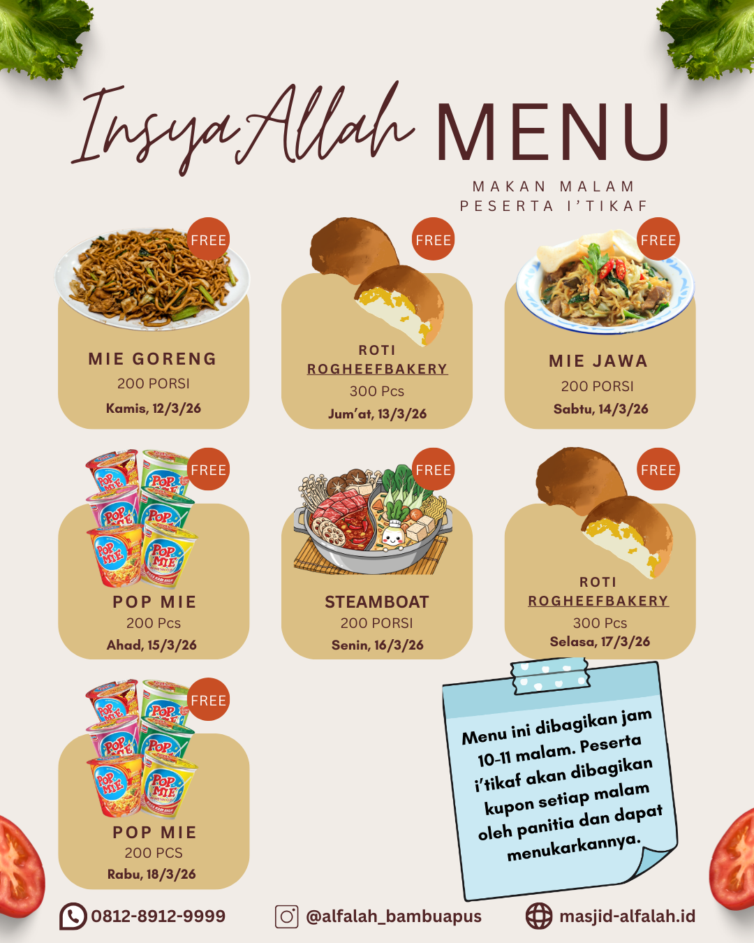 Makan Siang Gratis ini Insyaa Allah buka setiap hari ba’da Zhuhr, kecuali hari Ahad dan libur nasional. Terbuka untuk umum, siapa pun bisa makan di sini.