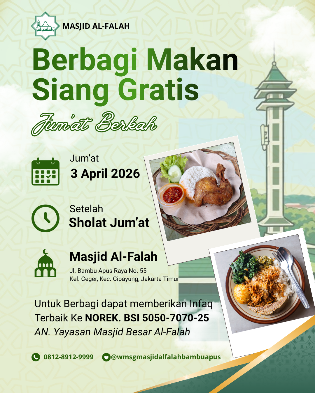 Kegiatan Makan Siang Gratis berjalan kembali dengan lancar. Kami ucapkan jazaakumullah khairan kepada seluruh jama’ah yang telah membantu kegiatan ini.