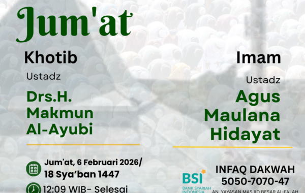 Sholat Jum’at, 13 Februari 2026/ 25 Sya’ban 1447 H